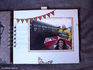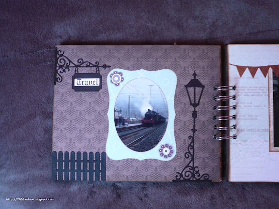 Como ya he dicho, he utilizado papales de "My mid's eyes" de la colección "Lost & Found tow", he distresado con la distress "vintage photo" para darle un aspecto viejuno siguiendo la temática del tren de vapor. El mini esta encuadernado con la Bind it All.