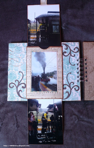 Mi superconductor especial es un apasionado de los trenes, así que llegado su cumple, pensé que sería un bonito regalo hacer un mini del tren de vapor y las fotos que nos hicimos ese día. Un poco antes de Navidad, compré el tacopales "Lost & Found two" de My mind's eye y al ver que parte de la colección era un tren de vapor, aluciné pepinillos de colores de lo bien que pegaba para mi proyecto secreto secretoso.