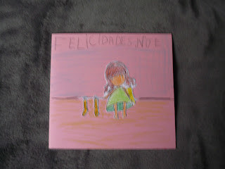 Araitz también scrapeo para Noe un tarjeta de cumpleaños, faltaría más!! (la foto ha salido movidísima, sorry).