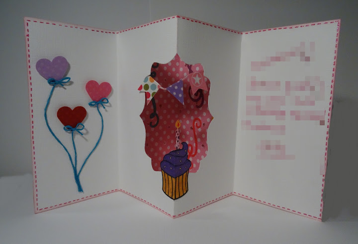 Otra tarjeta de felicitación. Esta vez me estreno con este tipo de estructura que queda muy chula en su interior.
